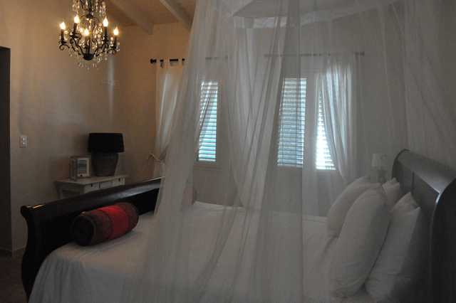 De drie slaapkamers, met een badkamer en-suite en apart toilet, zijn smaakvol ingericht. De keuken vol moderne apparatuur als een elektrische kookplaat, combioven / magnetron, Amerikaanse koelkast en een kookeiland, is van alle gemakken voorzien. Ook de aangrenzende woonkamer is luxe gemeubileerd. Bovendien zijn alle ruimtes voorzien van airconditioning. Hoge plafonds zorgen voor veel licht, koelte en een gevoel van ruimte en vrijheid. Veel zul je echter niet binnen zijn.